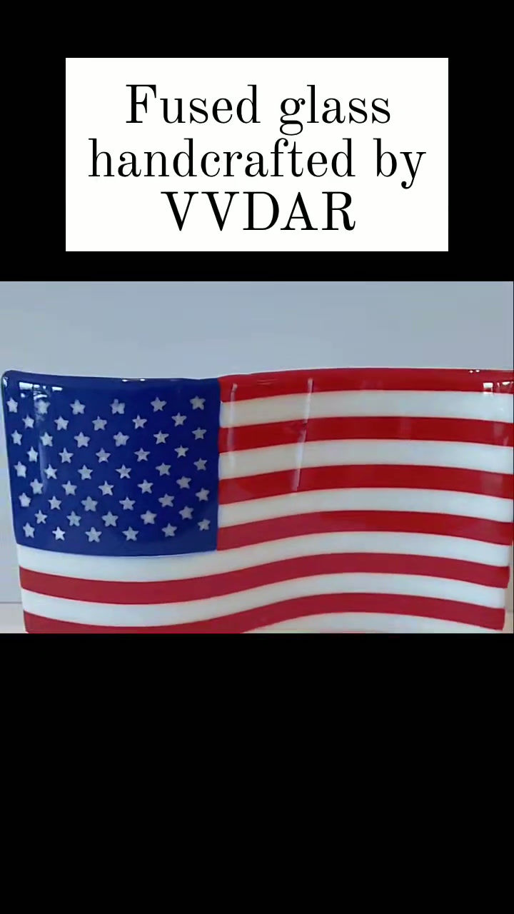Handcrafted by Chapter Members - Fused Glass Waving US Flag